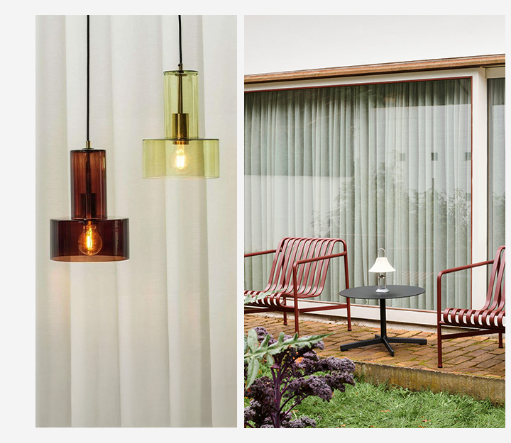 Denne mangfoldighed er også tydelig i materialer og overflader: Sorte og hvide lamper skaber stilfulde kontraster eller rolige overgange. Lamper i beton, glas, træ, metal eller messing tilfører forskellige taktile kvaliteter og æstetiske udtryk – fra et rent og minimalistisk look til et varmt, sanseligt eller eksklusivt udtryk. Resultatet er belysningsløsninger, der ikke blot passer ind i indretningen, men også tilfører rummet en sanselig og nærværende oplevelse.