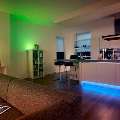 Philips Hue LightStrips er en lang LED strip, du kan lege med rundt omkring i huset. Brug LightStrips under møbler, langs trappen, i glasskabet, på børnenes værelse - you name it.