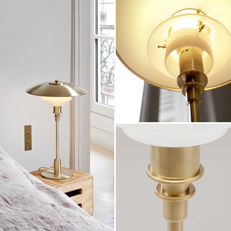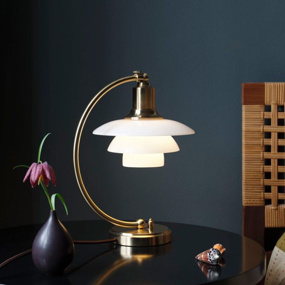 Ligesom det oprindelige design, kommer lampen med et stel i messing. Kombineret med en skærm i opalglas, har lampen et klassisk udseende, der passer perfekt i enhver form for indretning. Bordlampen har selvfølgelig en PH 2/2 skærm – bygget op efter det legendariske treskærmsystem, som er udtænkt af Poul Henningsen i 1926. De semitransparente skærme har en smuk blank overflade på ydersiden, men indersiden er sandblæst for en mat finish.