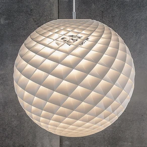 Lampen fås i flere forskellige størrelser. Patera 450 pendel er, med en diameter på 45 centimeter, helt ideel over spisebordet, hvor den ikke blænder. Med en diameter på 90 centimeter kommer Patera 900 Pendlen rigtig til sin ret i rum med højt til loftet. Det smukke geometriske mønster oplyses af lyskilden i centrum, skaber et magisk udseende og giver en jævn 360-graders belysning.