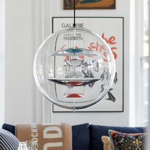 En af de mest kendte fra Verpans produktsortiment må være VP Globe. Pendellampen er en af de smukkeste med sin transparente akrylkugle, der oprindeligt er designet af Verner Panton i 1969. Det er en ægte klassiker, der pynter ethvert hjem. Globe kan fås i akryl eller aluminium indrammet af en smuk glaskugle. Inde i lampen findes fem reflektorer med forskellige, lakerede farver, som skaber et behageligt lysudfald i dit hjem. Globe er den optimale pendel til at hænge over spisebordet. Det er en lampe, hvor du er sikret høj kvalitet, og du modtager et certifikat med lampens unikke nummer.