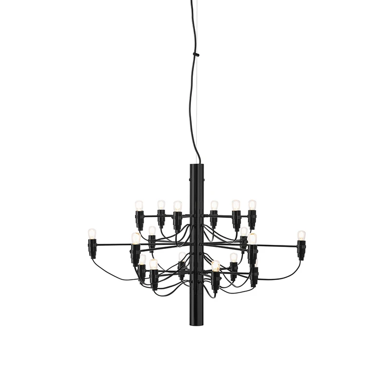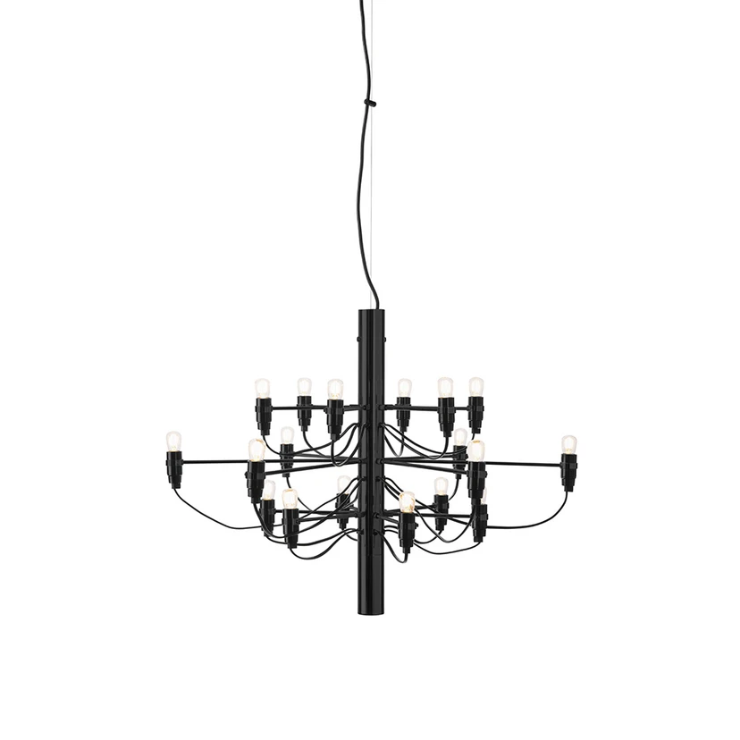 2097-serien fås med 18, 30 eller 50 lyskilder, som med fordel kan anvendes i en trappeopgang eller over et stort spisebord. Den er nu også lavet med 18 lyskilder, så den kan anvendes i rum hvor der ikke er så højt til loftet. Bemærk at der medfølger LED lyskilder fra Flos til denne model.
