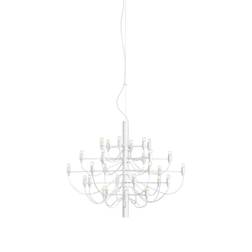 2097 er en karakteristisk og utrolig smuk lysekrone. De elegante arme og simple cylindriske former giver lampen en industriel æstetik. I stedet for at skjule ledningerne, er de et væsentligt element i designet og giver en blød og organisk karakter til lampen. I messing eller krom, passer den iøjefaldende lysekrone let ind i den skandinaviske stil.