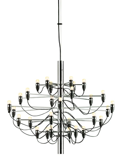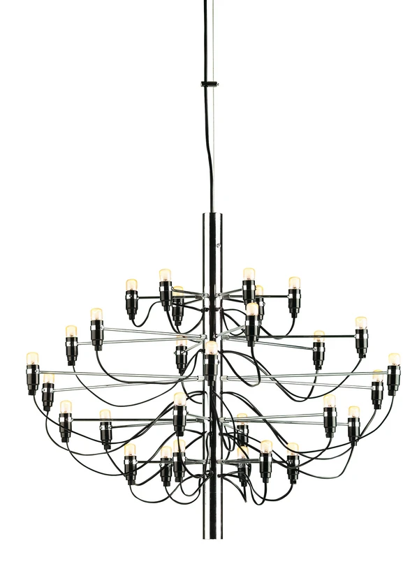 2097-serien fås med 30 eller 50 lyskilder, som med fordel kan anvendes i en trappeopgang eller over et stort spisebord. Den er nu også lavet med 18 lyskilder, så den kan anvendes i rum hvor der ikke er så højt til loftet. De medfølgende pærer er udført i klar glas.