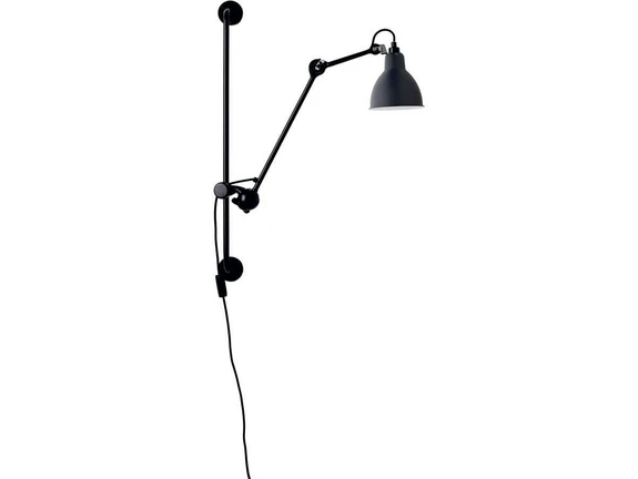 210 Blå/Sort Væglampe er et ikon for det 20. århundrede – Med rødder til 1922 hvor de første gennemtænkte streger blev slået af Bernard- Albin GRAS, og siden er familien bare vokset. Udtænkt ti kontorer og til industrien var serien totalt unik, med sit enkle, robuste og alligevel meget ergonomisk design. Den grundlæggende form er med hverken skruer eller svejsede samlinger.