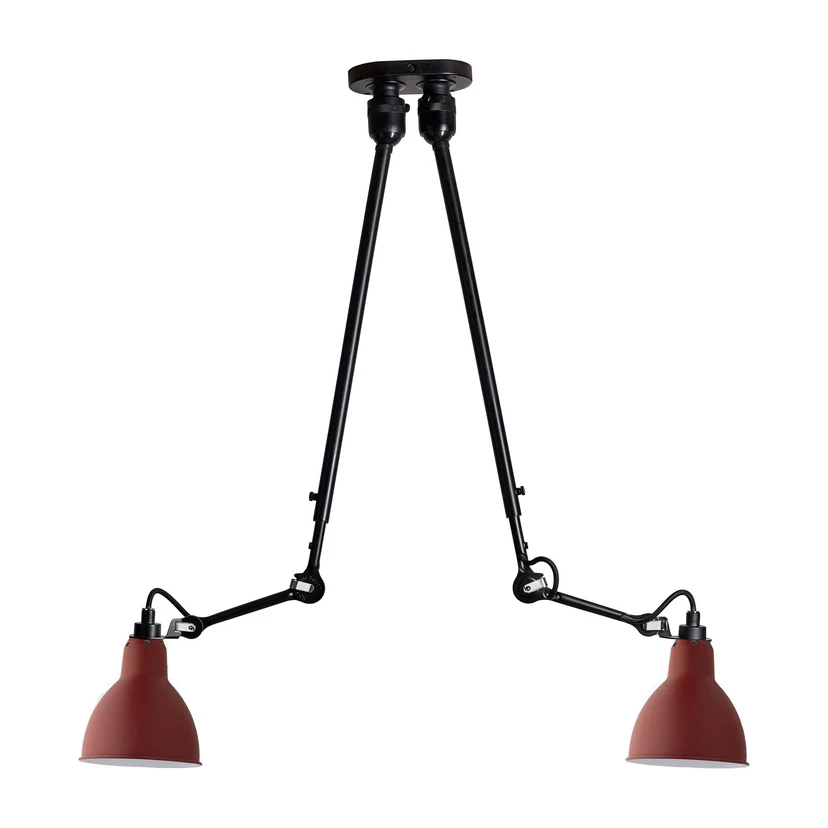 302 Dobbelt Loftlampe Rød er et ikon for det 20. århundrede – Med rødder til 1922 hvor de første gennemtænkte streger blev slået af Bernard- Albin GRAS, og siden er familien bare vokset. Udtænkt ti kontorer og til industrien var serien totalt unik, med sit enkle, robuste og alligevel meget ergonomisk design. Den grundlæggende form er med hverken skruer eller svejsede samlinger.