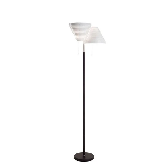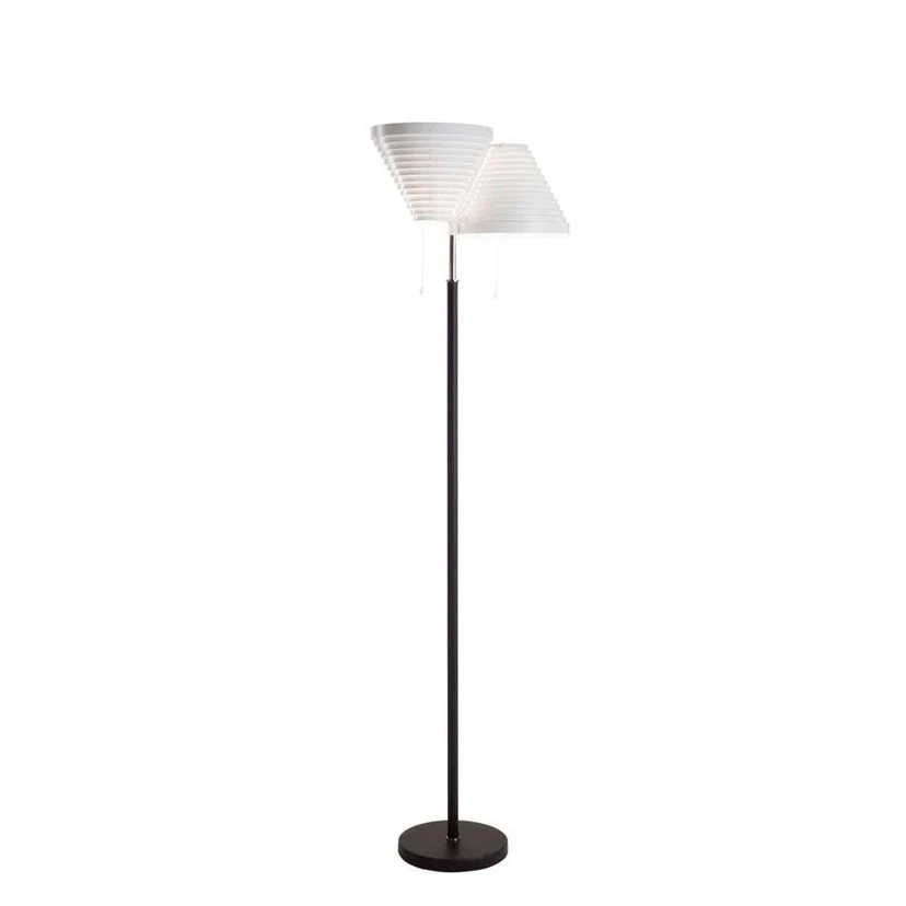 Den iøjefaldende skærm, fås både i som A910 væglampe og A622 loftlampe, samt en række forskellige gulvlamper med én, to eller tre skærme; A805, A809 og A810 –