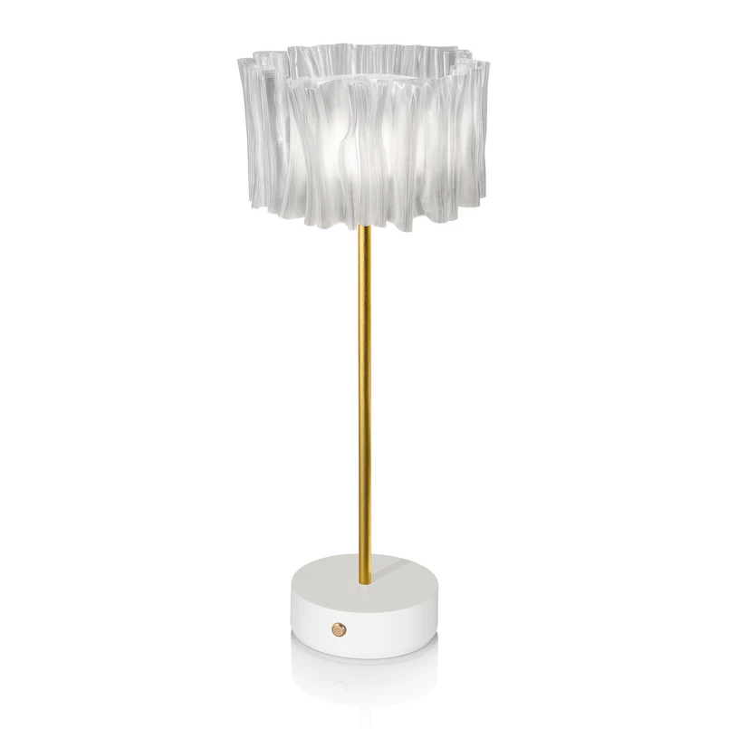 Accordéon Battery Bordlampe Prism/White tilhører den unikke og æstetiske lampeserie fra SLAMP af Marc Sadler, som vil give alle indretningsstile et eksklusivt og moderne look. Accordéon serien består af forskellige pendler, bordlamper og bærbare bordlamper. Alle lamperne er karakteriseret ved den bløde, bølgede lampeskærm, fremstillet i enten Lentiflex©, Cristalflex© eller Goldflex©, som kendetegner SLAMP. Alle lamperne i serien er håndlavede og skræddersyet til at give et bestemt lys, hvilket gør hver enkelt lampe mere unik. Lamperne kommer også i forskellige farver, så du kan derfor få præcis dén lampe, der passer bedst til dit behov og din stil.