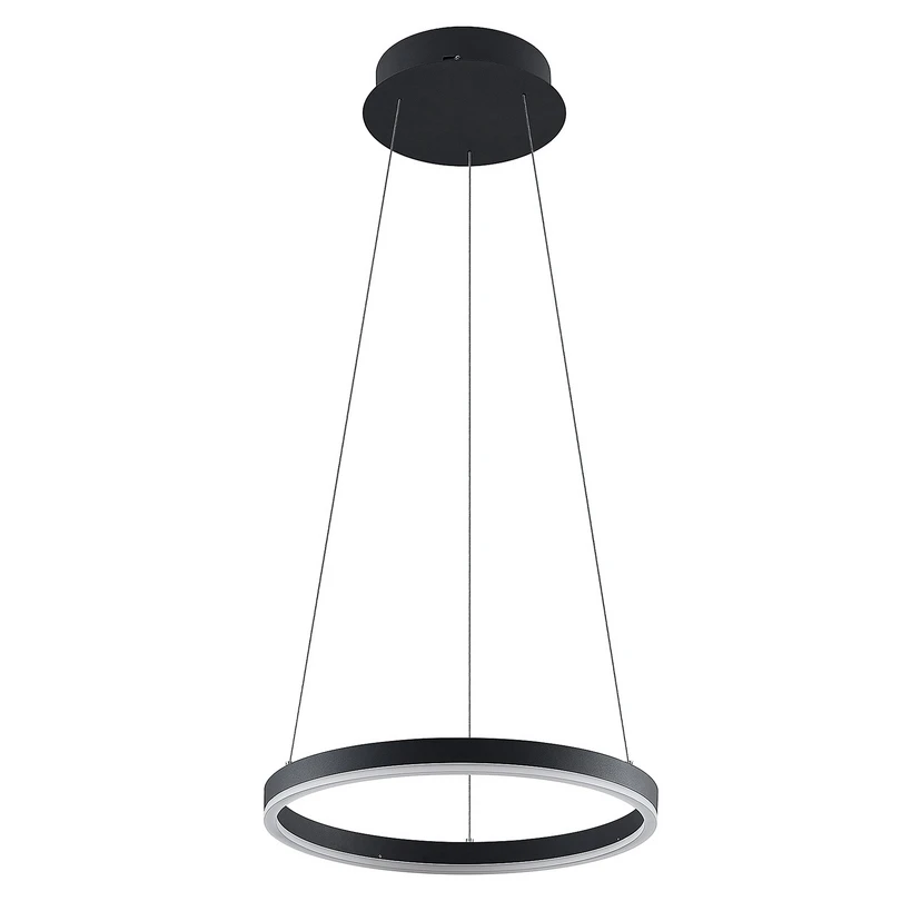 Lampen er konstrueret i aluminium, og er sortlakeret. Bunden af lampen er lavet af akryl, og den tynde hvide akryl lader et blidt og blændfrit lys undslippe den store cirkel. Lampen monteres med wire, der skal skrues i loftet, og når den hænger i lokalet kan man ikke lade vær at lade tankerne vandre til Saturns cirkler og det uendelige univers.