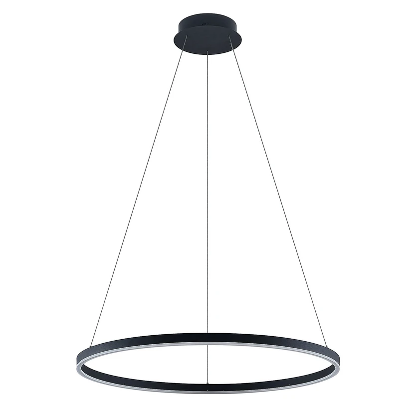 Karakteristisk for denne lampe er dens sorte ringformede lampehoved, der har stor udtryksfuldhed trods sit detaljereducerede, minimalistiske design. Den indbyggede LED-lyskilde er placeret på undersiden, hvor de løber i en ring hele vejen rundt om armaturet, så den harmoniske cirkulære form fremhæves smukt, når lampen tændes, samtidig med at man får et glødende varmhvidt lys, der retter sig nedad i et praktisk direkte skær og effektivt oplyser området nedenunder.