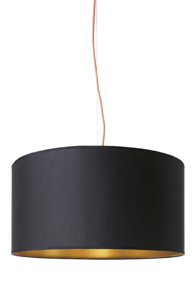 Alexis er udstyret med en orange stofledning, og indersiden af den håndlavede stofskærm er guldfarvet, hvilket giver en helt fantastisk lysspredning og hygge i rummet, samt det giver lampen ekstra kant og charme, der vil give din stue et smukt løft.
