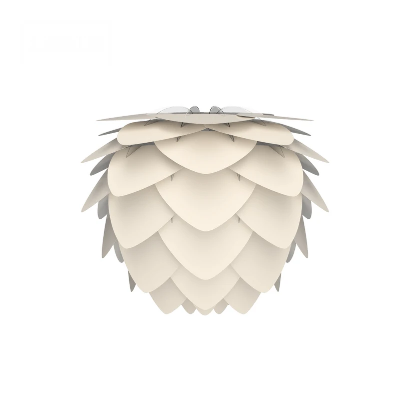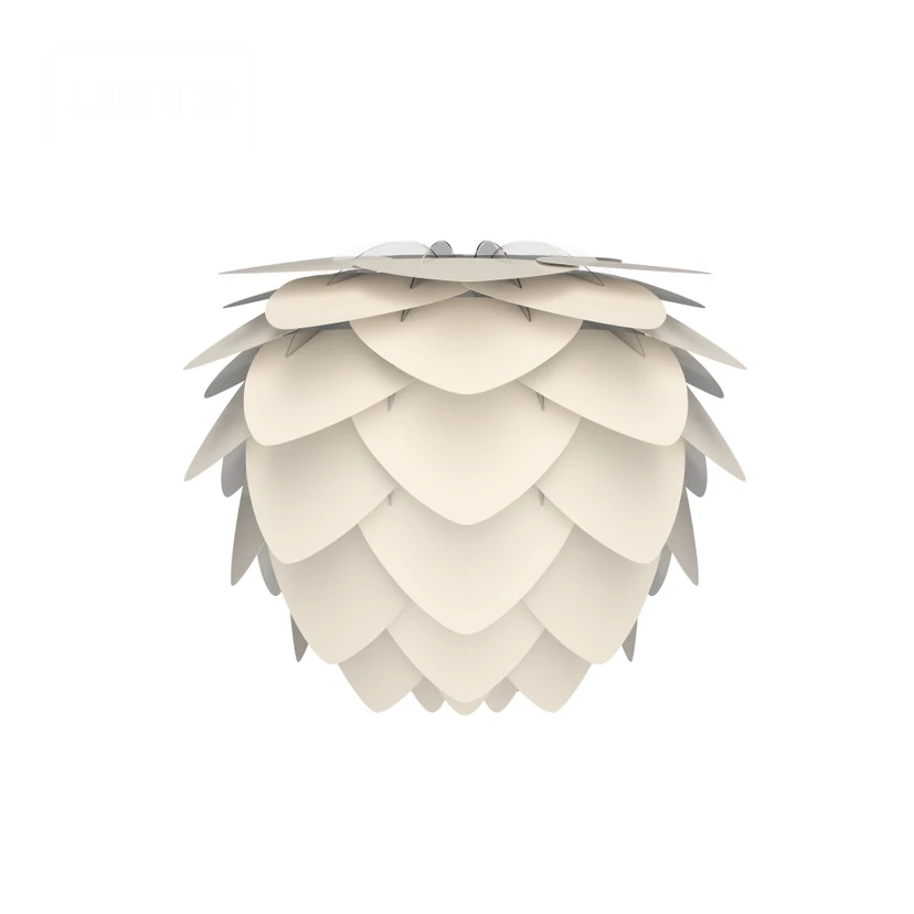 Aluvia Mini Skærm Pearl er en elegant og smuk lampeskærm, fremstillet i laserskåret aluminium – en robust og let lampe, der forstærker skønheden i dit hjem. Skærmen er opbygget, så aluminiumsbladene reflektere et diffust lys og samtidig sikrer at lampen ikke blænder.