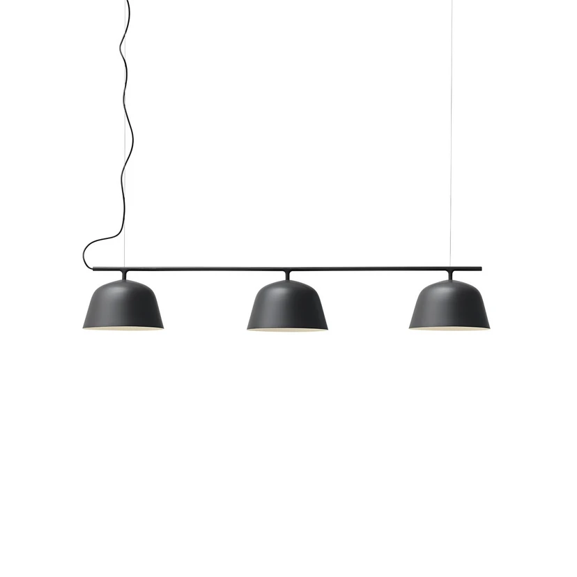 Ambit Rail i sort er en meget smuk tilføjelse til Ambit serien. Arkitekterne bag, har udviklet en ny fortolkning af den klassiske billardbordslampe. Ambit Rail er konstrueret af tre skærme monteret på et rør.