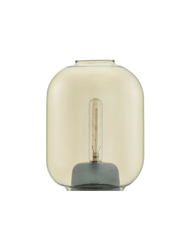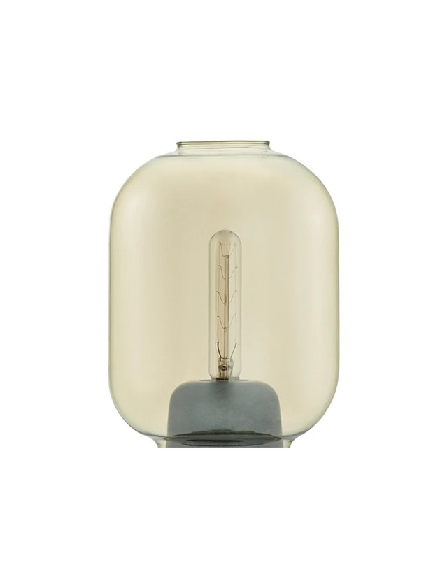 Amp Glas t/Bordlampe Guld er en løs skærm, som passer til fra Normann Copenhagen. Den kan anvendes når man har behov for en ny skærm eller blot ønsker at give bordlampen et nyt udtryk, med en røg- eller guldfarvet glasskærm.