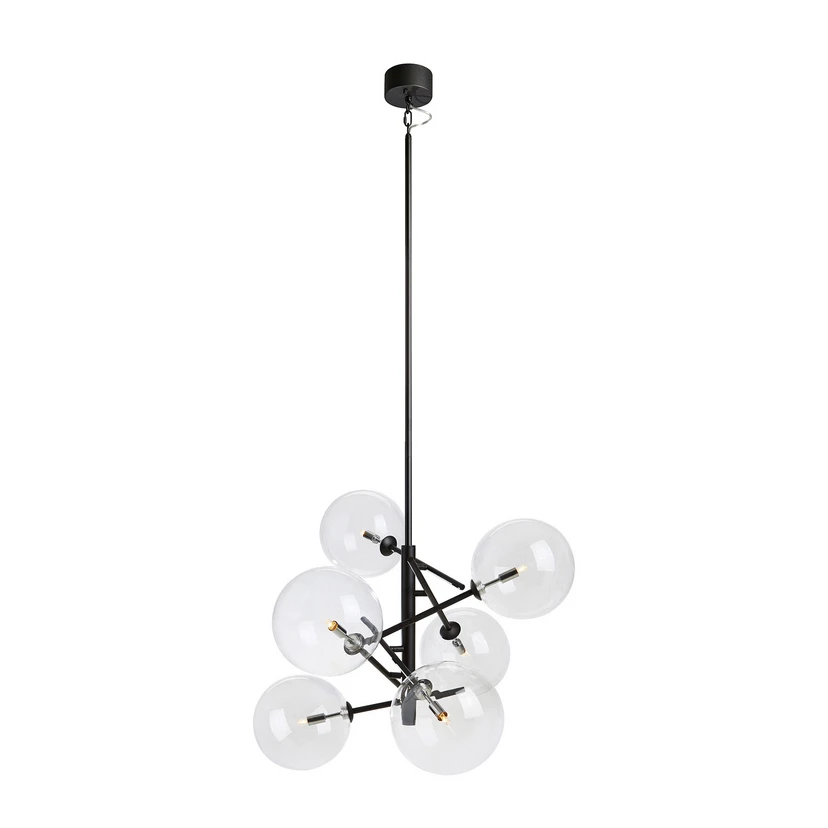 Andrew 6 Pendel Black/Clear efterlader et varigt indtryk med sit flotte og stilfulde design, der samtidig har en let dramatisk karakter. Det sorte metalstel skaber et virvar af forgreninger, der hver munder ud i en voluminøs glasskærm. Den moderne fremtoning gør Andrew 6 Pendel særligt ideel til nutidige indretninger.