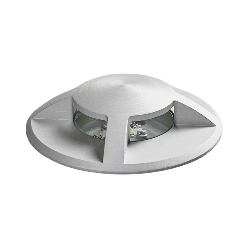 Anina Udendørs Nedgravningsspot Alu er en moderne, pladsbesparende model, der imponerer med sin robusthed og giver masser af lys til orientering i mørket. Lampen er karakteriseret ved sin skinnende buede metalkrop, der er opdelt i kvartdele af glas. Lyset skinner ud fra hver kvartdel, så der opstår et smukt fire-delt mønster, når lampen tændes. Den flotte effekt kan forstærkes yderligere, hvis man har flere af samme model monteret på række eller i et gitter, så der opstår et harmonisk, sammenhængende udtryk.