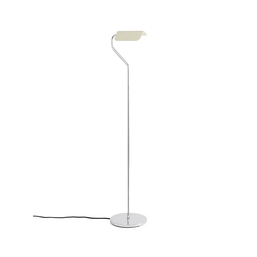 Apex Gulvlampe Oyster White fra HAY er en moderne fortolkning af den klassiske banklampe, designet af britiske John Tree. Denne gulvlampe kombinerer traditionelle elementer med en moderne, farverig æstetik. De foldede stålskærme skaber en karakteristisk silhuet, der står i grafisk kontrast til de krombelagte baser. Med en rund base og en lang, slank stamme, tilbyder lampen en 360 graders roterbar skærm, så du kan justere lyset efter dine behov.