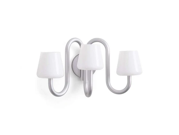 Apollo Sconce Væglampe White/Opal præsenterer sig i et moderne og elegant design med enkle former, svungne buer og en minimalistisk ynde i hele sit udtryk. Lampen er en del af en serie bestående af flere typer bordlamper, væglamper og lysekroner i forskellige størrelser.