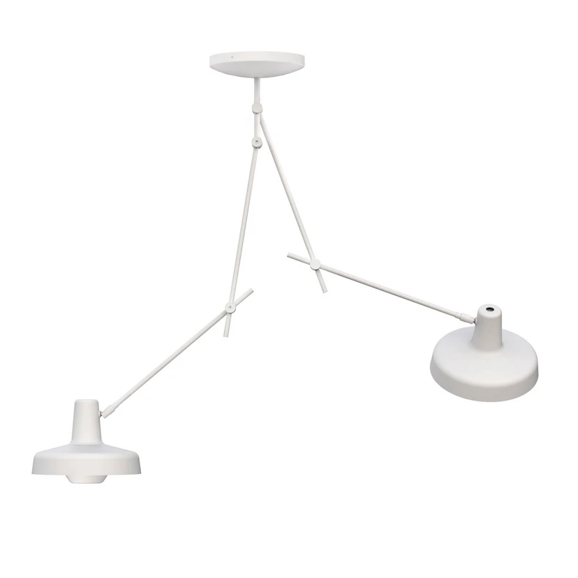 Arigato Loftlampe Dobbelt Hvid er skabt i en kombination af stål og aluminium, med en hvid inderside i lampens skærm, der spreder lampens lys. Produktet er håndsamlet, og når man rører lampen mærker man tydeligt den høje kvalitet og kærlighed, som Grupa lægger i hver eneste lampe.