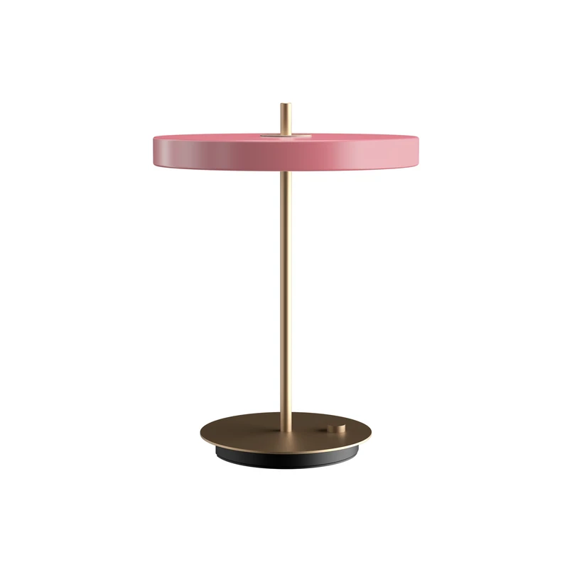 Asteria Bordlampe Nuance Rose er en flot, slank og minimalistisk lampe. UMAGE har gjort det igen og designet en smuk lampe, hvor der både er tænkt på designet, teknologien og håndværket. Det centrale messingrør, der går gennem lampens skærm som en lodret akse, giver et stramt og eksklusivt udtryk til lampen.