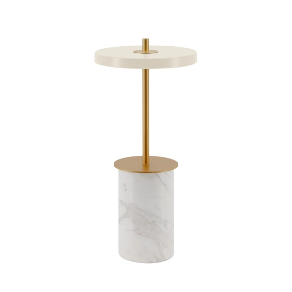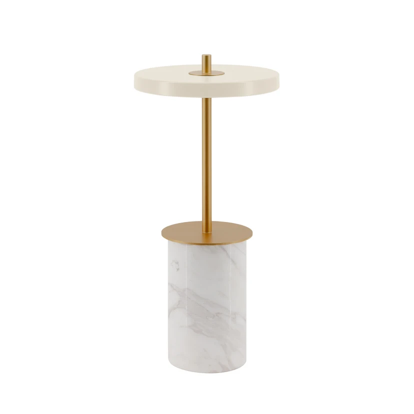 Asteria Move Portable Bordlampe Mini White Marble supplerer smukt de øvrige lamper i den æstetiske Asteria-serie med praktisk design og funktionalitet i bordlampeformat. Lampen kommer i to forskellige udgaver og flere flotte farvevarianter, der alle er trådløse, så man kan have glæde af dem i alle rum.