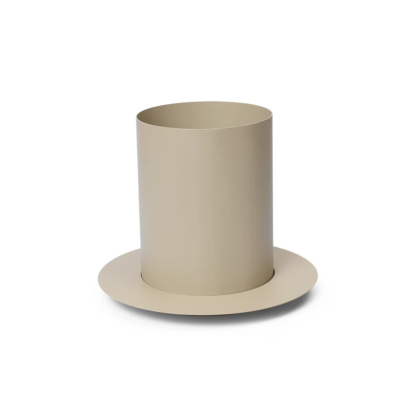 Auran Pot Small Cashmere er en unikt designet krukke med en rå og uforbeholden æstetik, der er inspireret af brutalistismen. Krukken har et enkelt og ligefremt formsprog bestående af en cylinder med en cirkulær kant og en geometrisk simplicitet, der gør denne krukke velegnet til alle moderne hjem. Krukken er udført i jern, hvilket kun fremhæver den brutalistiske stil, og fås i to udgaver. Den ene har en galvaniseret overflade, mens den anden har en råhvid pulverlakering. Den enkle udformning skaber en smuk og klar ramme for krukkens indhold, og man kan derfor med fordel udstyre den med potteplanter eller andre pyntende genstande. Bruger man krukken til planter, anbefaler vi, at man kombinerer Auran Pot med en inderpotte.