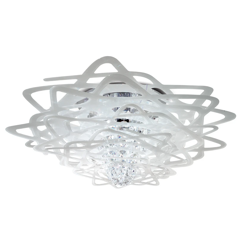 Aurora Loftlampe L Hvid fra SLAMP er den perfekte tilføjelse til dit hjem, hvis du ønsker at skabe en atmosfære af ynde og elegance. Denne loftlampe, designet af Nigel Coates, er en sand perle i kategorien af loftlamper. Med sin hvidlakerede methacrylatstruktur og store dimensioner, formår den at sprede et blødt og indbydende lys i ethvert rum. Inspireret af det betagende syn af en rose-guld aurora, der oplyser himlen før solopgang, er lampens kerne prydet med krystaller, der reflekterer lyset på en næsten pulserende måde. Aurora Loftlampe er ikke kun smuk, men også praktisk med SLAMPs innovative magnetiske system, der gør installation og vedligeholdelse til en leg. Uanset om du ønsker at oplyse din stue, soveværelse eller spisestue, vil denne lampe tilføje et strejf af luksus og stil til dit hjem..