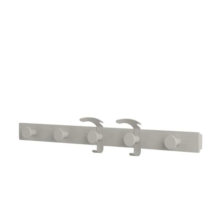 Avail Coat Rack Grey/Grey formår at bringe enkelthed, elegance samt funktionalitet ind i din entré. Den enestående knagerække er designet med skandinavisk materialitet i hjertet, hvilket afspejles gennem dens minimalistiske og strømlinede design. Designet har fem knager på en række, fremstillet i egetræ med to metalkroge, som du kan altid kan flytte rundt på efter behov og humør. Grundet knagerækken enkle og stilrene design kan den placeres i enhver indretningsstil, hvor den både fungerer som et praktisk element i entréen eller soveværelse og et dekorativt indretningselement, der aldrig går af mode.