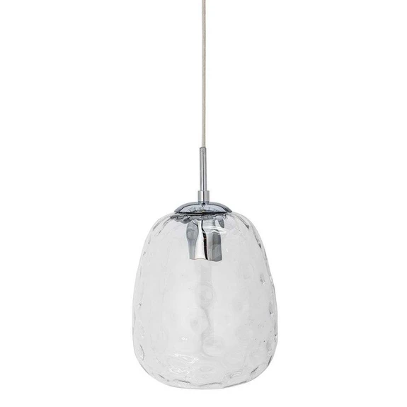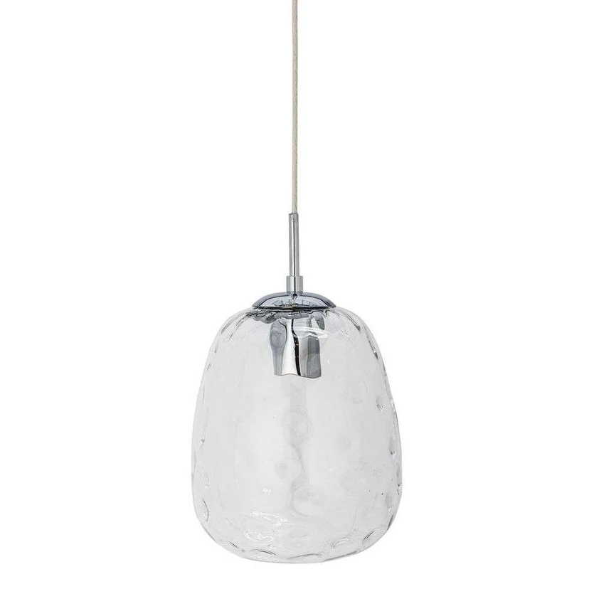 Pendlens skærm har en sart, oval form, der brydes af et sindrigt mønster af runde bobler, der buer indad mod lyskilden. Boblerne kaster smukke refleksioner, når lyskilden ikke er tændt, så lampens design kan nydes i både tændt og slukket tilstand. Når lyset tændes, trænger det ud gennem glasset i et direkte skær. Glasset omslutter lyskilden men er fuldkommen gennemsigtigt, så der opstår en klar allroundbelysning, der både passer over spisebordet og som grundbelysning i mindre rum.