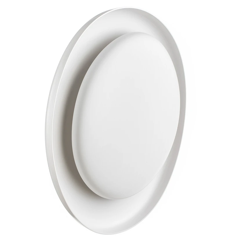 De smukke skærme er fremstillet i letvægts polycarbonat. Lampen kan derfor både monteres på væggen, som en skulpturel vægskulptur; eller på loftet, som et elegant og forfriskende alternativ til den traditionelle plafond.