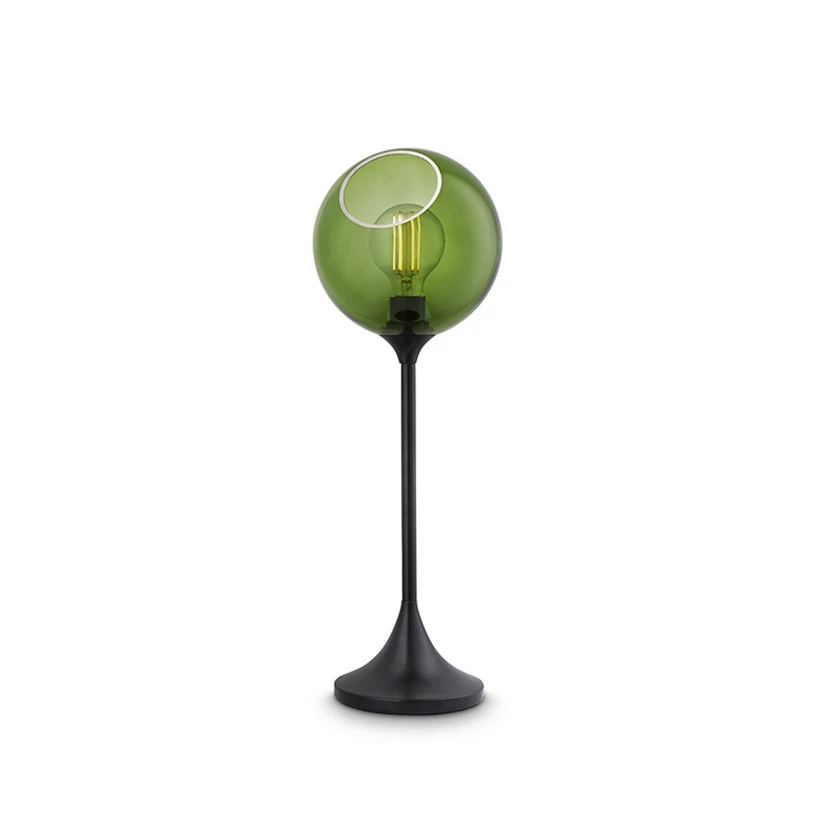 Ballroom Bordlampe Army/Black er en populær lampe, fra det utraditionelle brand Design By Us. Den mundblæste glaskuppel, er håndmalet med enten messing eller sølv, på facetkanten. Det ligger i Design By Us’ DNA, at være glad for farver, hvilket tydeligt ses i serien af Ballroom lamper, der kommer i flere forskellige farver.