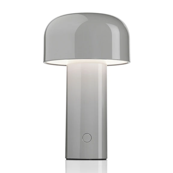 Bellhop Bordlampe Grey Polycarbonat, frem med sit stilfulde udtryk. Med inspiration fra den kendte ’Bellhop klokke’, man kender fra indtjekningen på klassiske hoteller, har Edward Barber og Jay Osgerby designet en transportabel bordlampe med et flot, direkte lys.