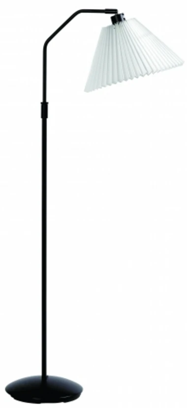 Berlin gulvlampen i sort har et stilrent design, og en fin hvid plisseret skærm, der giver lampen et rigtig klassik look. Gulvlampen fra mærket El-Light kan justeres i højden og skærmen kan vippes, hvilket gør det til en funktionel og fleksibel lampe, som har flere funktioner og højder.