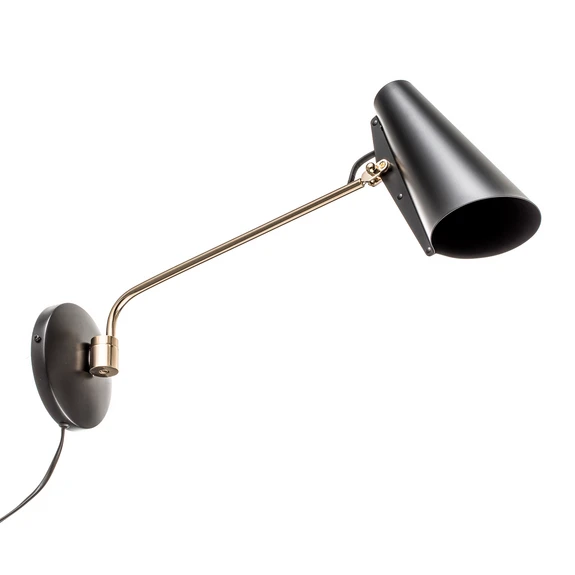 Birdy Væglampe Sort beviser nu efter over 60 år at godt holder til tidens skarpe tand. Birdy er en elegant serie bestående af Bordlamper, Gulvlamper samt Væglamper der findes i to forskellige længder. Stregerne blev slået i 1952 i en modernistisk stil, der selv i dag virker knivskarp og er med helt i front.