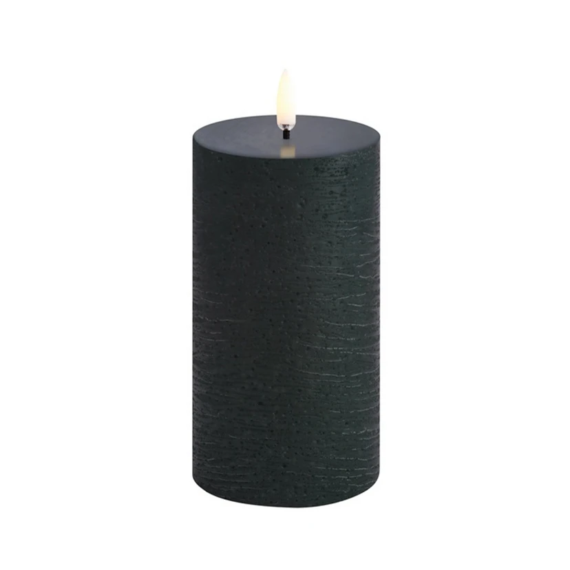 Bloklys LED 7,8x15,2 cm Pine Grøn/Rustic fra Uyuni Lighting er det perfekte valg til dig, der ønsker at skabe en hyggelig og sikker atmosfære i dit hjem. Dette grønne bloklys er fremstillet af jomfru paraffinvoks, hvilket giver det en autentisk og luksuriøs følelse. Med en højde på 20,3 cm og en diameter på 20,3 cm passer det perfekt ind i enhver indretning. Uyuni Lighting's LED lys er kendt for deres innovative design og praktiske funktioner. Den unikke 3D flamme skaber en realistisk flammeeffekt, mens den batteridrevne teknologi sikrer, at lyset er både flammefrit og lugtfrit. Du kan nemt styre lyset med en fjernbetjening eller bruge timerfunktionen, der kan indstilles fra 4 til 10 timer, så du kan tilpasse belysningen til enhver lejlighed. Skab en rolig og indbydende stemning med et enkelt tryk, og nyd den fleksible kontrol over lysets intensitet og varighed.
