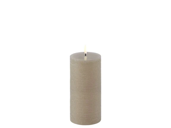 Bloklys LED 7,8x15,2 cm Rustic Sandstone har en unik 3D-flamme, der til forveksling ligner flammen fra et traditionelt stearinlys. Takket være LED-teknologien, har Uyuni Lighting skabt en serie af LED-stearinlys, der ligner en levende flamme, som står og blafrer let. Flammen har ingen fysisk bevægelse, og du slipper derved for at bruge strøm på at holde bevægelsen i gang.