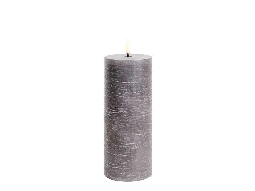 Bloklys LED 7,8x20,3 cm Rustic Grey har en unik 3D-flamme, der til forveksling ligner flammen fra et traditionelt stearinlys. Takket være LED-teknologien, har Uyuni Lighting skabt en serie af LED-stearinlys, der ligner en levende flamme, som står og blafrer let. Flammen har ingen fysisk bevægelse, og du slipper derved for at bruge strøm på at holde bevægelsen i gang.