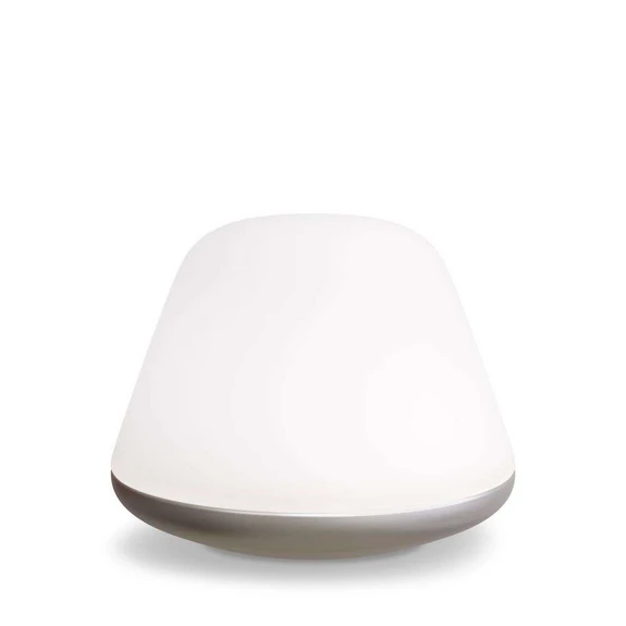 Bloom Bordlampe Large Silver er en enkel men smukt designet lampe, der minder om de dekorative, slebne sten, man finder ved danske kyster. Lampens bløde linjer og organiske form gør den til et dekorativt såvel som praktisk element i den moderne indretning. Skærmen, der er fremstillet af matteret opalglas, udgør det meste af lampens overflade. Den nederste del består af en skinnende metalbase, der smukt komplementerer det matte glas. Når lampen tændes, lyser hele skærmen op i et blødt og lækkert skær, der egner sig glimrende som accentbelysning i stuen eller på soveværelset.