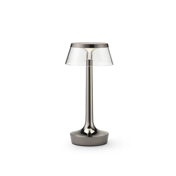 Bon Jour Unplugged Bordlampe Chrome/Black - Flos er den perfekte kombination af elegance og funktionalitet til dit hjem. Denne bordlampe fra det anerkendte mærke Flos er designet til at give direkte lys uden behov for ledninger, hvilket gør den ideel til fleksibel placering i ethvert rum. Med en højde på 27 cm og en diameter på 11 cm passer den perfekt på skrivebordet, natbordet eller i stuen som en stilfuld lyskilde.