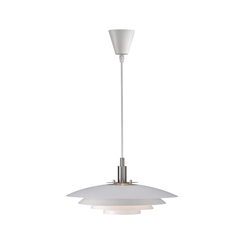 Lampeskærmens karakteristiske flerlagsdesign sikrer en særdeles blød lysfordeling. Da skærmene er fremstillet af metal, dirigerer de den samlede lyskvalitet nedad, så der opnås en god belysning på området under lampen.