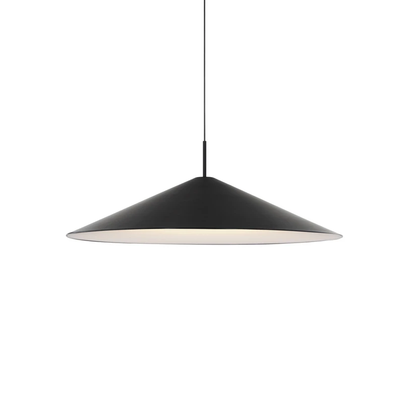 Brolly Pendel Ø90 Anodized Aluminium fra New Works er en pendel lampe, der kombinerer enkelhed med elegance. Fremstillet af børstet anodiseret aluminium, udstråler denne lampe en tidløs skønhed, der passer ind i ethvert rum. Den koniske skærm, med en imponerende diameter på 90 centimeter, giver lampen et markant arkitektonisk udtryk. Undersiden af lampen er lavet af PC-plast, hvilket sikrer et bredt og gradueret lys, der skaber en behagelig atmosfære uden at blænde. Brolly Pendel er ideel til at svæve over spisebordet eller i stuen, hvor du ønsker både funktionelt og æstetisk tiltalende belysning. Den konkave diffuser sikrer, at lyset spredes blødt og generøst, hvilket gør det til en perfekt løsning for dem, der søger både stil og komfort i deres hjem. Oplev, hvordan denne pendel kan transformere dit rum med sin stærke silhuet og subtile elegance.