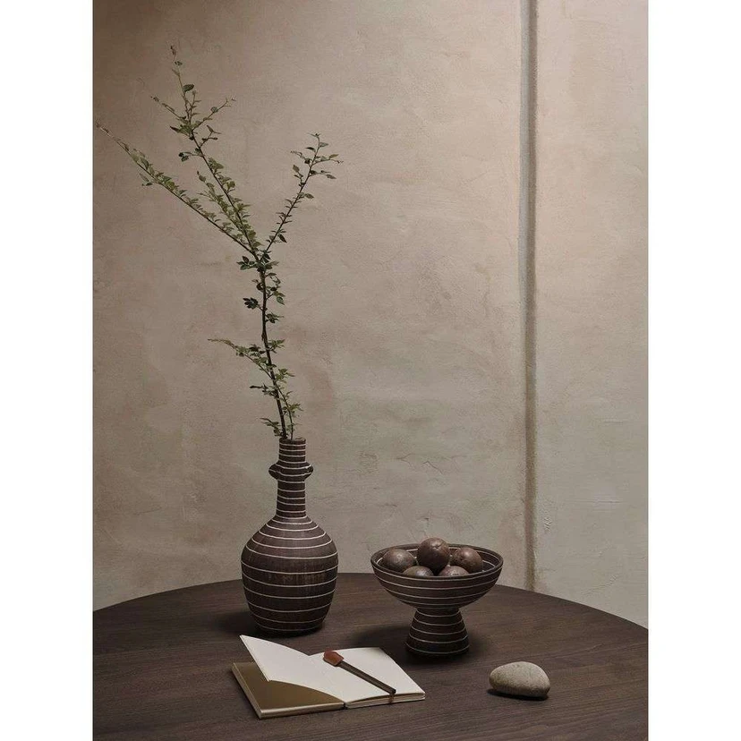 Brura Bowl Coffee/White fra Ferm Living er en skål, der bringer en varm og sanselig atmosfære ind i dit hjem. Fremstillet af terrakotta, udstråler denne skål en rustik elegance, der er perfekt til at skabe et fængslende midtpunkt i enhver stue. Den kaffefarvede glasur tilføjer en følelse af dybde og rigdom, mens de håndmalede hvide striber skaber en iøjnefaldende kontrast, der fremhæver skålens unikke form. Denne kombination af farver og materialer gør skålen til et visuelt tiltalende element, uanset om den pryder dit spisebord, køkkenbord eller en skænk. Brura skålen er ikke blot en dekorativ genstand, men også en funktionel beholder, der elegant iscenesætter sit indhold. Bemærk venligst, at dette er et håndlavet produkt, og derfor kan der forekomme variationer, hvilket kun tilføjer til dens charme. Udforsk hele Brura serien for at finde flere unikke stykker til dit hjem.