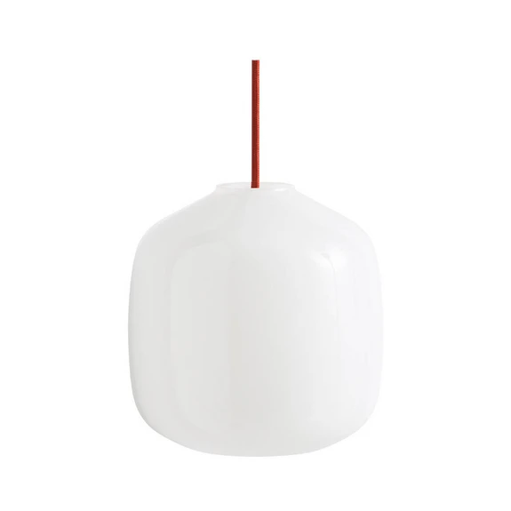 Buoy Glass 200 Pendel Opal/Rusty Red fra HAY er en elegant pendellampe, der kombinerer æstetik og funktionalitet. Designet af det danske designstudio Aspekt Office, er denne pendel skabt til at give en behagelig belysning, der let integreres i ethvert rum. Lampens skærm er fremstillet af opal glas, hvilket giver et blødt og diffust lys, der skaber en varm atmosfære. Den organiske form og de naturlige kurver gør den til en enkel, men iøjnefaldende belysningsløsning.
