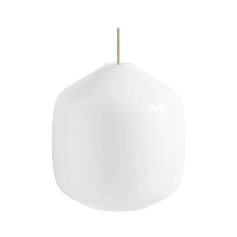 Buoy Glass 300 Pendel Opal/Beton Grey fra HAY er en elegant pendellampe, der kombinerer æstetik og funktionalitet. Designet af det danske designstudio Aspekt Office, tilbyder denne pendel en behagelig belysning, der let integreres i ethvert rum. Lampens skærm er fremstillet af opal glas, hvilket giver et blødt og diffust lys, der skaber en varm atmosfære. Den organiske form og de naturlige kurver gør den til en enkel, men iøjnefaldende belysningsløsning.