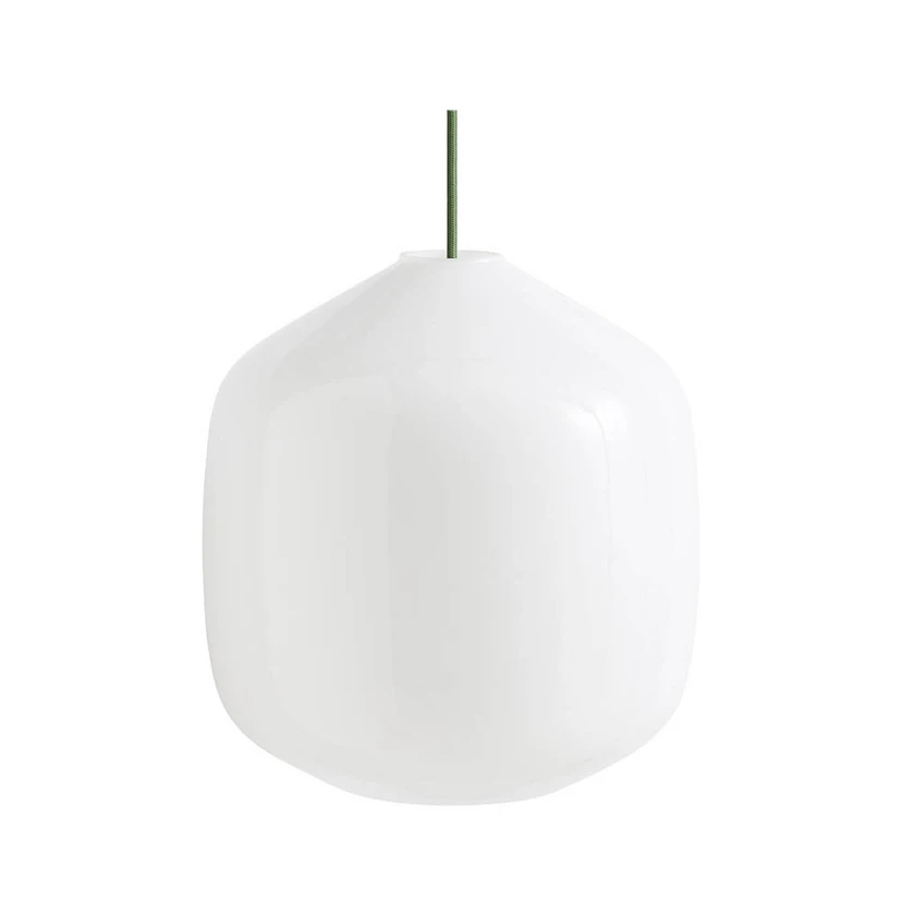 Buoy Glass 300 Pendel Opal/Garden Green fra HAY er en elegant pendellampe, der kombinerer æstetik og funktionalitet. Designet af det danske designstudio Aspekt Office, tilbyder denne pendel en behagelig belysning, der let integreres i ethvert rum. Lampens skærm er fremstillet af opal glas, hvilket giver et blødt og diffust lys, mens den organiske form tilføjer et moderne touch.