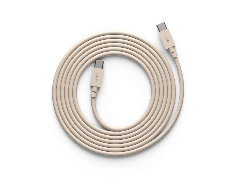 Cable 1 USB-C to USB-C 2m Beige er fremstillet af kvalitetssilikone og er designet til at supplere funktionen og stilen af Avolts Square 1-serie af strømudvidere. Kablet har et USB-C-stik i hver ende og kan dermed bruges til opladning af smartphones, tablets og andre enheder. Kablet er praktisk designet med en ledning på 2 meter, så man har mere fleksibilitet og ikke er begrænset til stikkets placering i væggen.