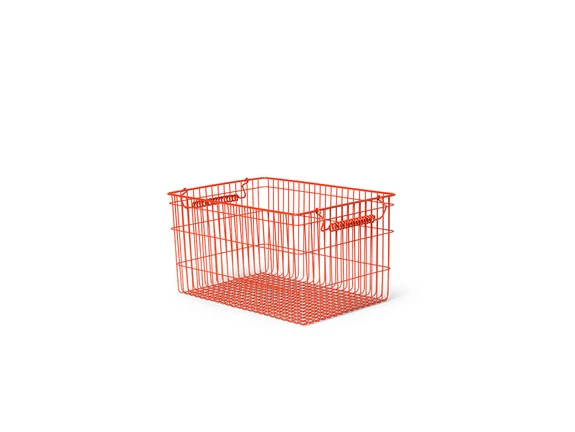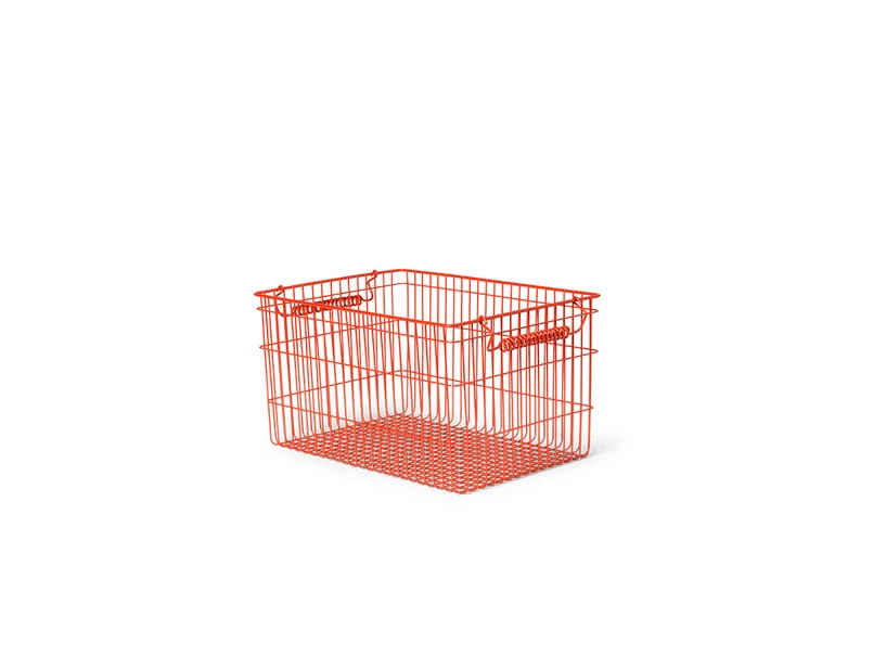 Cala Stackable Baskets Set of 2 Poppy Rød fra Ferm Living er den perfekte opbevaringsløsning til dit hjem. Disse elegante opbevaringskurve er fremstillet af holdbart pulverlakeret jern i en smuk rød farve, der tilføjer et strejf af farve og stil til ethvert rum. Inspireret af det spanske ord cala, der betyder å, er disse kurve designet til at være både funktionelle og æstetisk tiltalende. De kan stables op til tre i højden, hvilket gør dem ideelle til at organisere alt fra kontorartikler til toiletsager eller legetøj. Det unikke spiralformede metalhåndtag giver ikke kun et behageligt greb, men fungerer også som et dekorativt element. Husk at vippe håndtagene indad, når du stabler kurvene, for at sikre stabilitet. Uanset om du placerer dem i stuen, på badeværelset eller i børneværelset, vil disse kurve fra Ferm Living tilføje både funktionalitet og elegance til dit hjem.