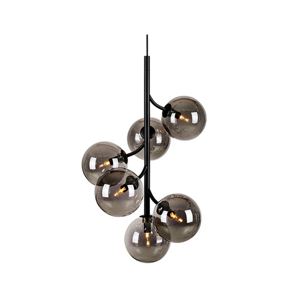 Callisto 6 Pendel Sort/Røg fra Markslöjd er den perfekte tilføjelse til dit hjem, hvis du søger en elegant og moderne belysningsløsning. Denne pendellampe kombinerer sort jern med røgfarvede glasglober, der hænger i forskellige højder og skaber en dynamisk og iøjnefaldende effekt i rummet. Med en diameter på 45 cm passer lampen perfekt over spisebordet, i stuen eller i entréen, hvor den vil tilføje et strejf af sofistikeret stil. De seks roterende glasglober giver et blødt og behageligt lys, der skaber en indbydende atmosfære. Lampen kræver seks G9 pærer med en maksimal effekt på 18W, som ikke medfølger. Den 1,5 meter lange ledning giver fleksibilitet i placeringen, så du kan tilpasse den til dine behov. Callisto 6 Pendel er ikke kun en funktionel lyskilde, men også et stilfuldt designelement, der vil løfte indretningen i ethvert rum.