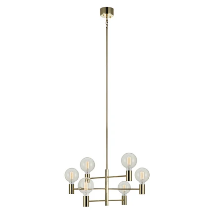 Capital 6 Pendel Messing fra Markslöjd er en elegant og tidløs pendellampe, der vil tilføje et strejf af luksus til dit hjem. Denne smukke lampe er fremstillet i jern og har en fortryllende messingfinish, der passer perfekt ind i både moderne og klassiske indretninger. Med sine seks arme, der er placeret på forskellige niveauer, skaber Capital en unik og dynamisk belysning, der fanger øjet og skaber en varm atmosfære i rummet. Lampen er en del af en populær serie, der også fås i poleret krom og mat sort, så du kan vælge den farve, der bedst komplementerer din stil. For at få det optimale lys kræver lampen seks pærer med en stor fatning (E27) på maks. 60W eller tilsvarende i LED, som ikke medfølger. Højden kan justeres fra 77 cm til 169 cm, hvilket gør det nemt at tilpasse lampen til forskellige rum og behov. Giv dit hjem et stilfuldt løft med denne fantastiske pendellampe.