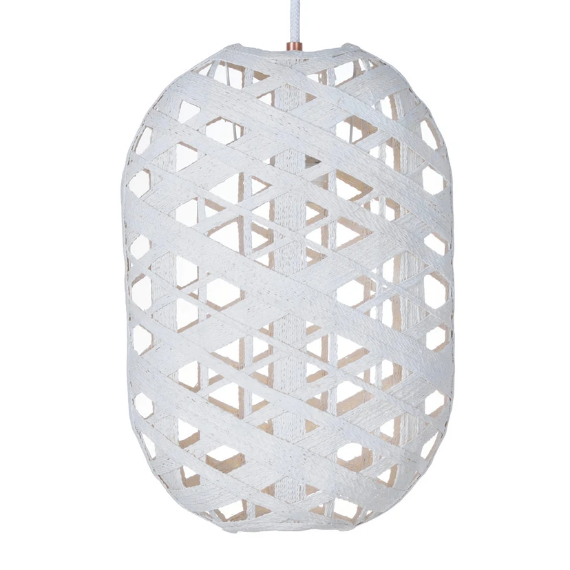Capsule Pendel S White er en harmonisk kombination af natur og design, der straks imponerer med sin ovale lampeskærm, der hænger ned som en klase fra loftet. Skærmens flettede, geometriske mønstre bringer et helt særligt lysbillede ind i rummet og skaber et legende samspil mellem lys og skygge.